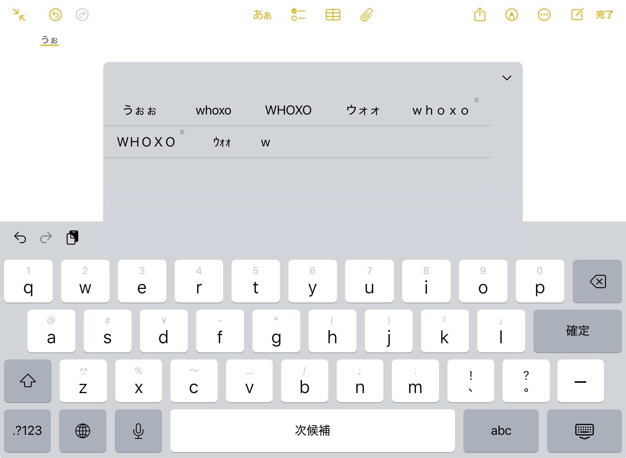 iPhoneやiPadで拗音を含めた入力をした後に他の文字を入力し消すと、予測変換がバグる