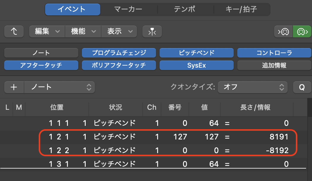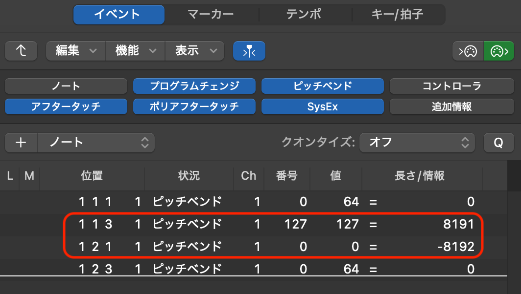 Logic Pro - ピッチベンドの分解能が14ビットになってしまう