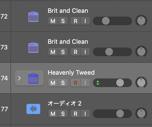 このトラック番号74〜76のミキサー画面を載せていただくと,もう少し状況がわかるかもしれません。