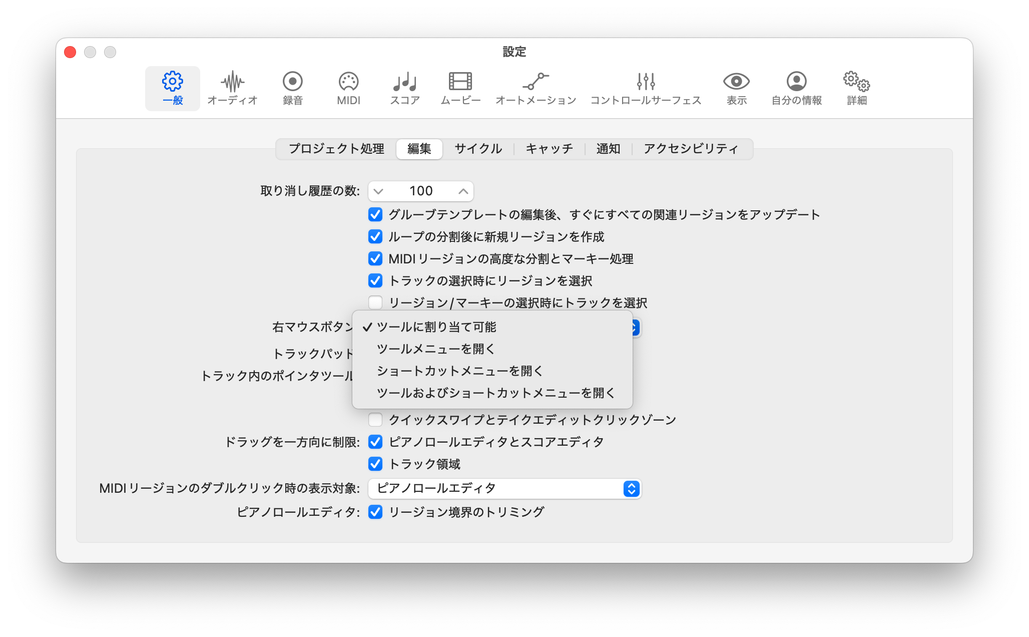Mac用Logic Proの「編集」設定 - Apple サポート (日本)