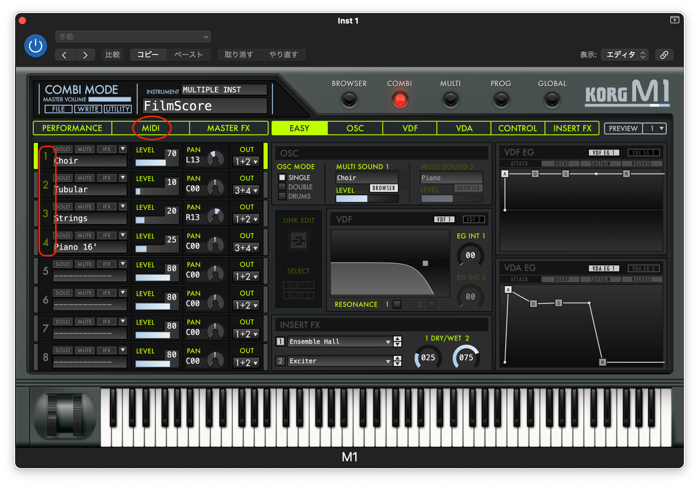 載せていただいたスクリーンショットって,M1をインサートして真っ先に立ち上がるCOMBIモードのFillmScoreそのままに思えるのですが,そうなのでしょうか(他のパラメータもデフォルト位置で何もいじってない状態に見えます)。
