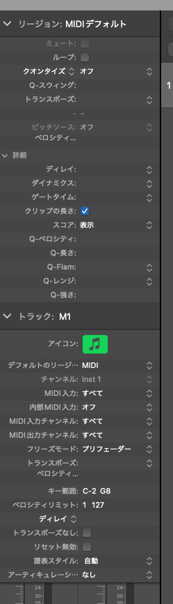 Logic Proのトラックインスペクタは初期状態のままだし,これでいいと思います。