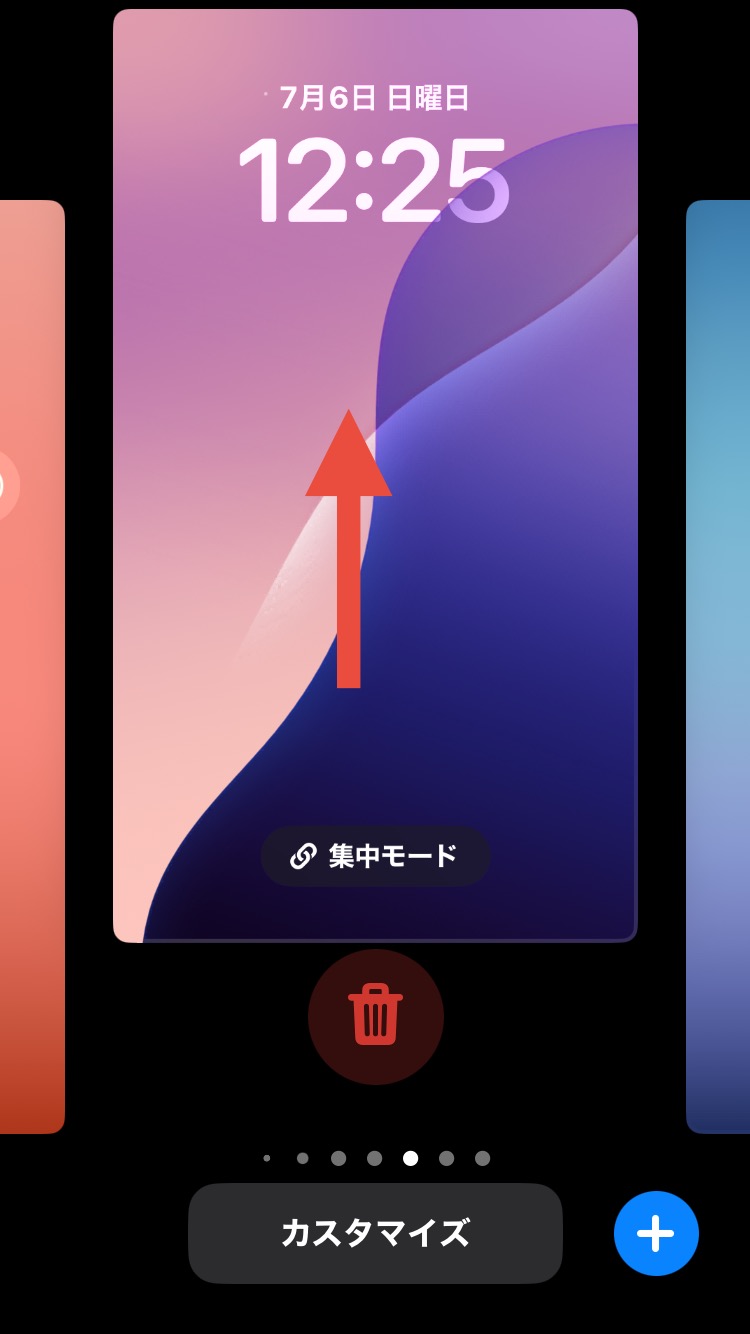 2. 上向きにスライドさせて、「ゴミ箱マーク」をタップします。