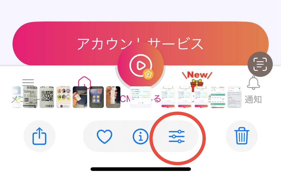 iPhoneの写真にマークアップしたいが、右上の一覧に編集がないのでマークアップが出来ない