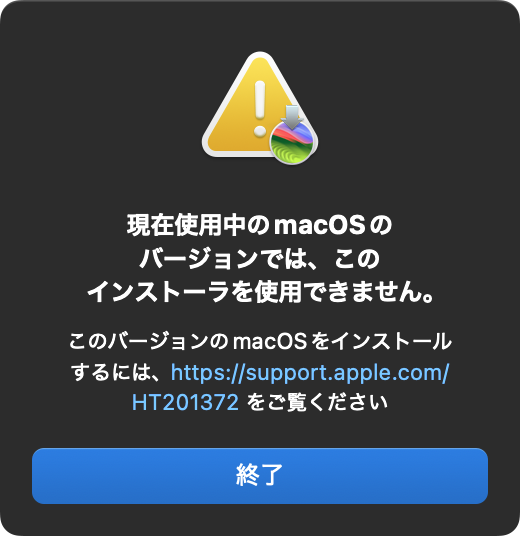 sequoiaの環境なので、たとえ外付けssdにインストールするつもりでも、sonomaのインストーラは動きません。