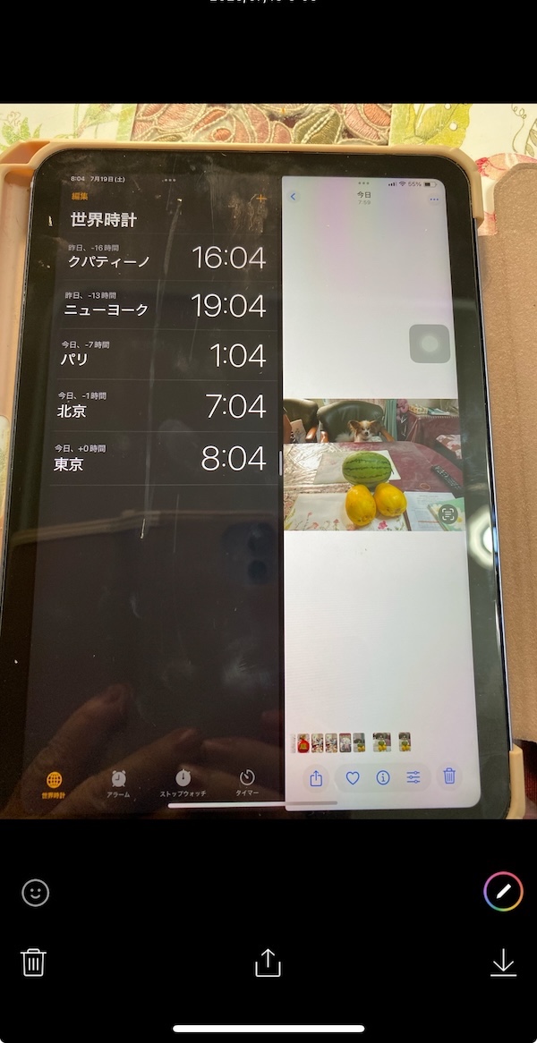 それをタップすると、右側のアプリが全画面表示され、世界時計は消えます。