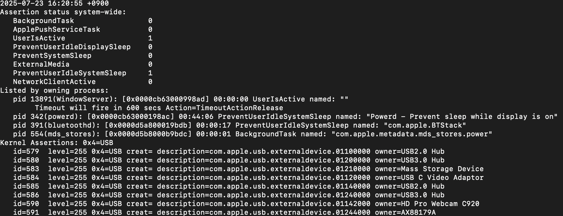 sudo pmset -g assertions ※実行後パスワードを要求されたら入力します