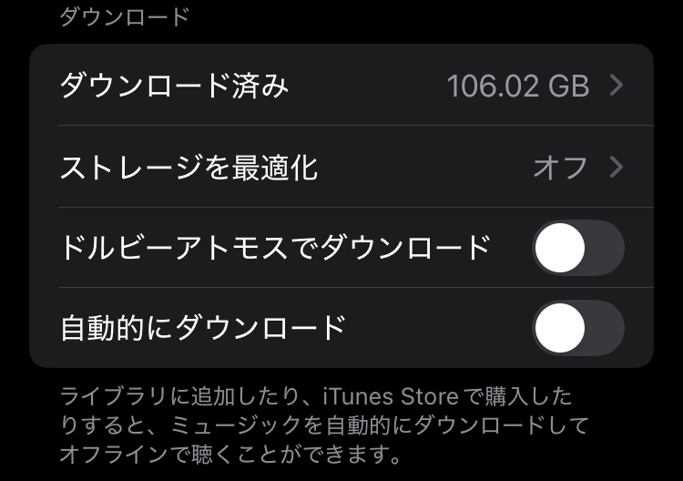 現在256GBのiPhone SE3を使用しており、iCloudミュージックライブラリに入ってる音楽をオフライン再生するため、約106GB分のファイルをiPhoneにダウンロードしました