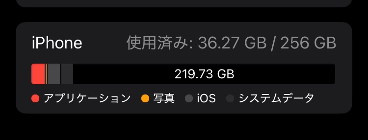 ダウンロード完了後、ストレージの使用状況を見たところ、