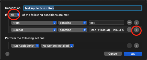 +ボタンを押して検索要件を追加します(allを選択)。 あるいは、Apple Scriptで作ります。