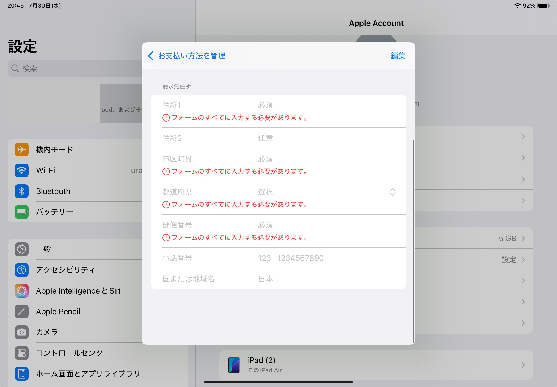 AppleギフトカードをApple accountに追加したのでアプリ内課金をしようとしたら住所が正しくありませんと表示され住所を入力し完了を押したが反映されないです。