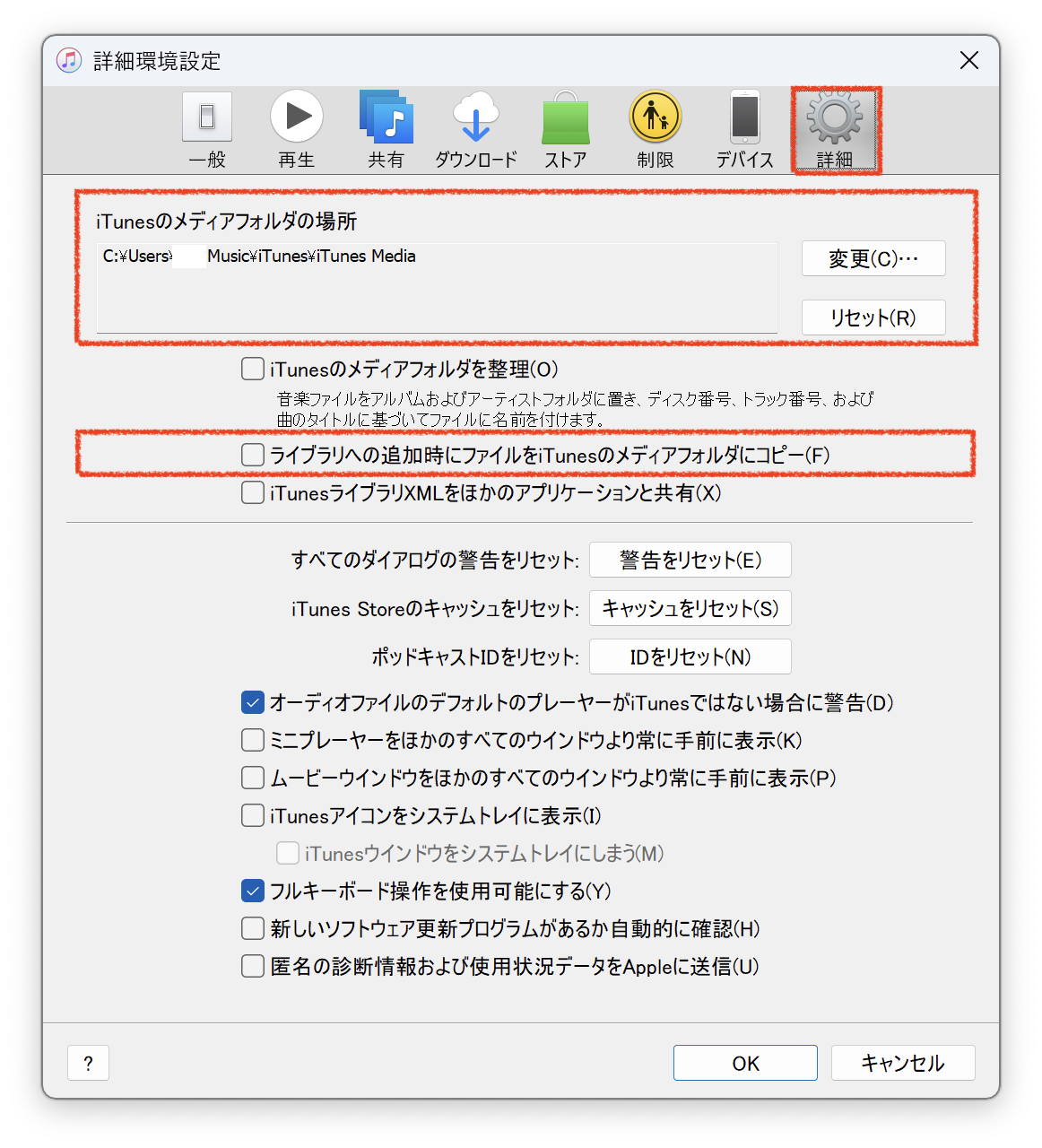 ①の設定はiTunesの環境設定で変更できる。・・・下記