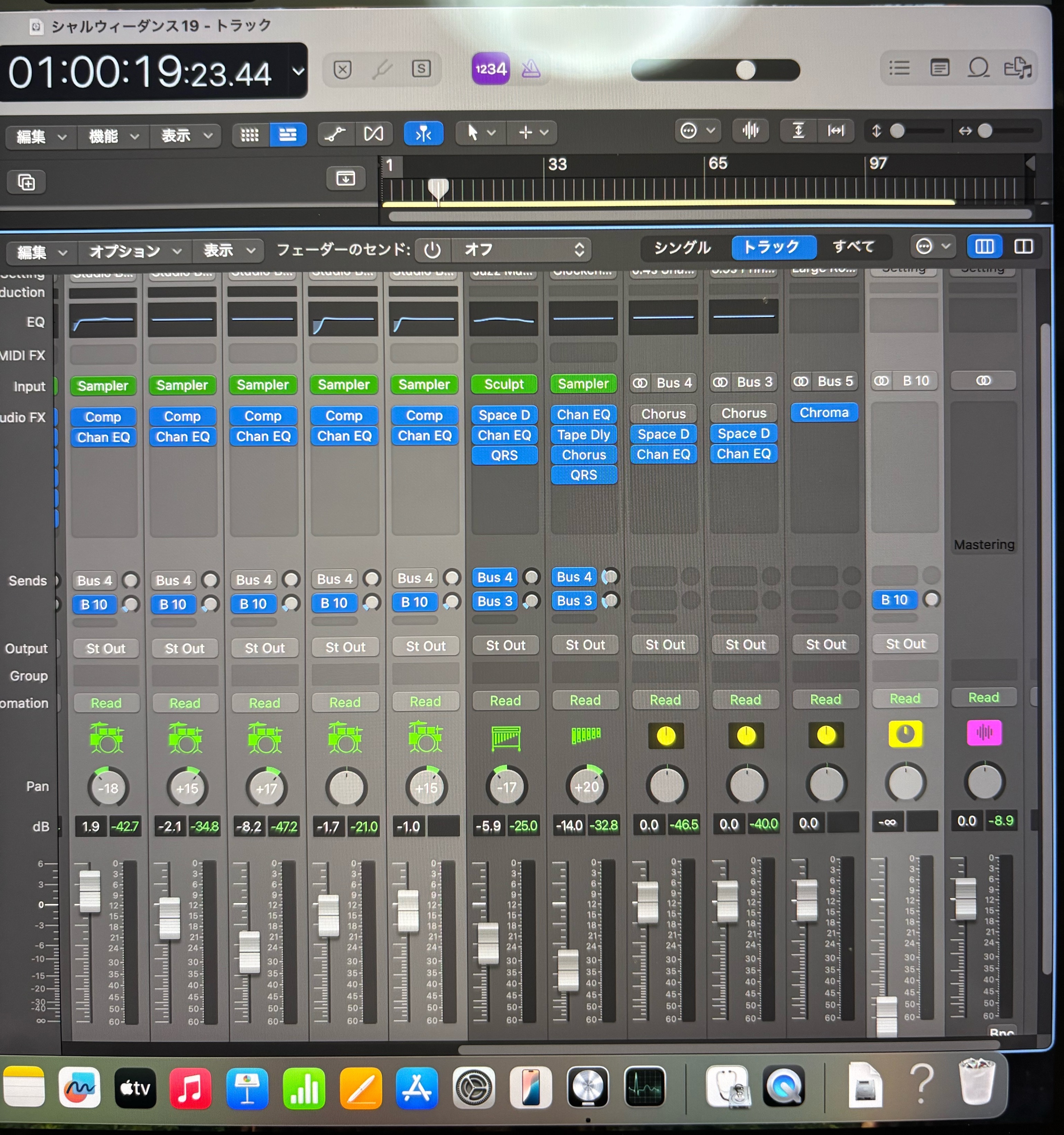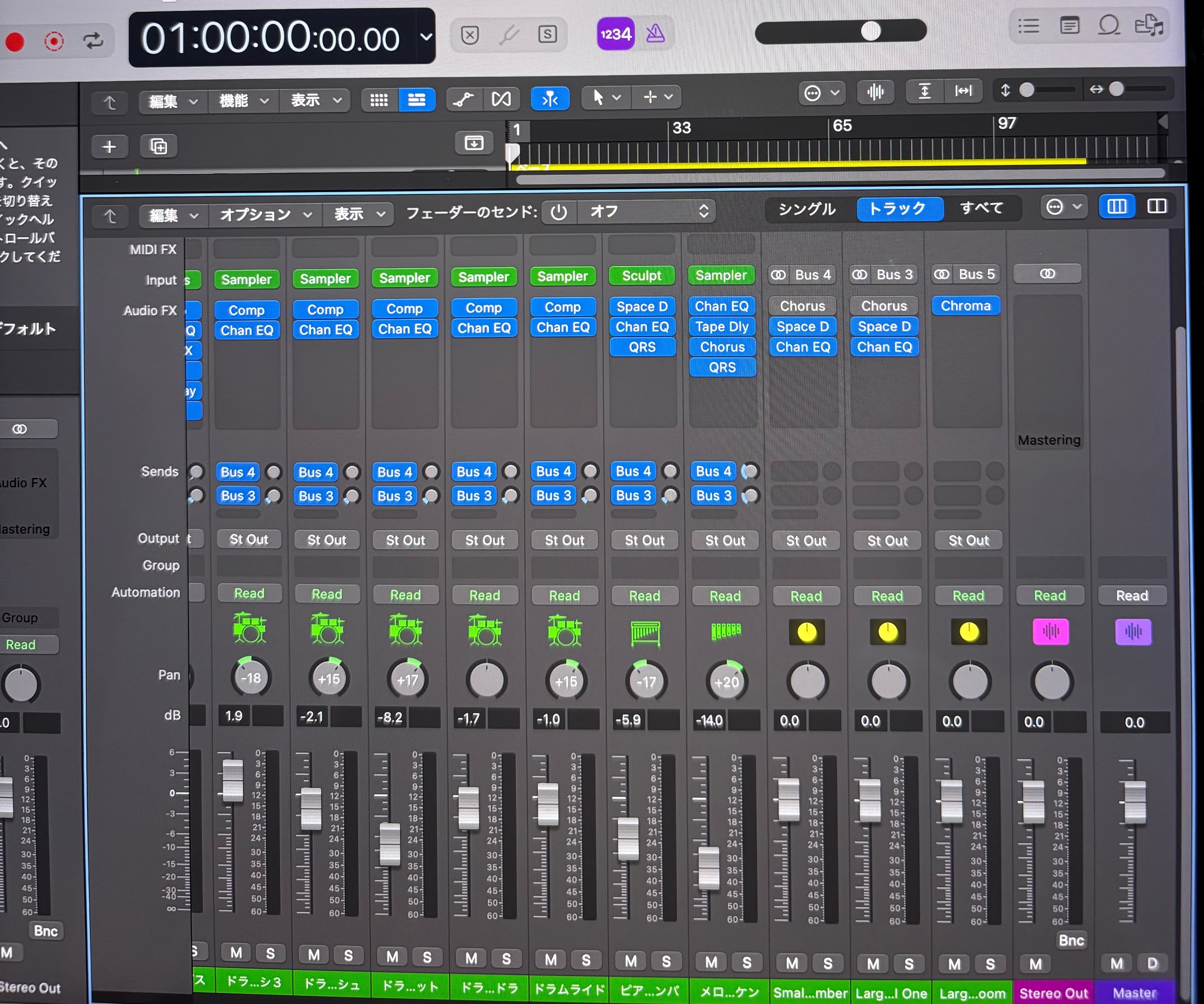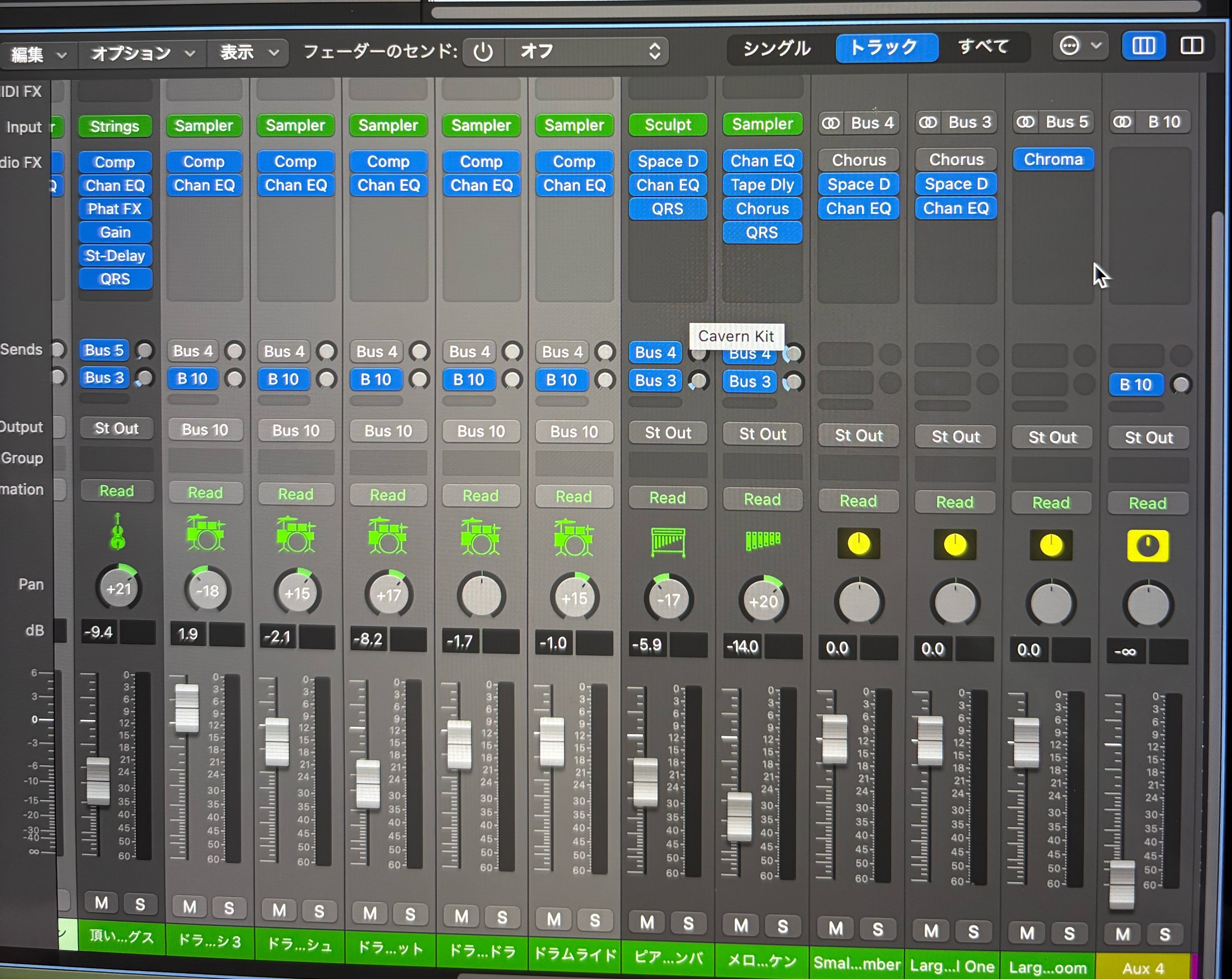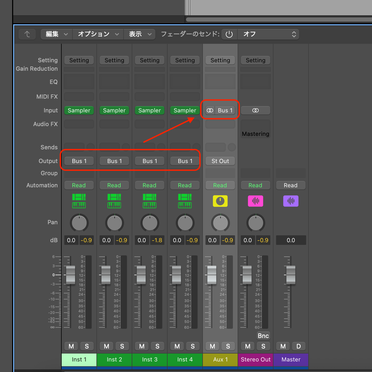 Logic Pro 11.2.2 - 複数のトラックを一つのオグジュアリーチャンネルストリップに纏めたい