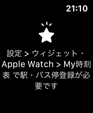 iPhone側ではマイ時刻表も登録済み、Applewatchに表示するも設定済みなのに、Applewatchではこのような画面がずっと出てきます。