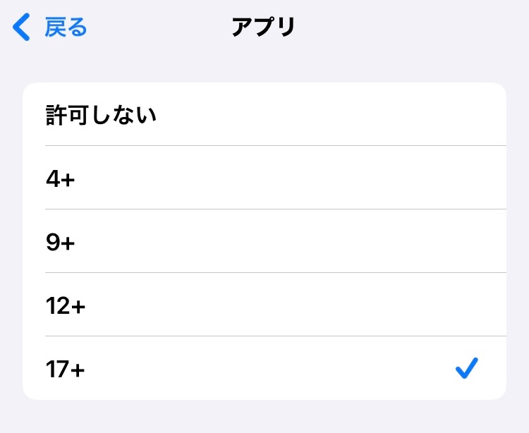 ユーザのユーザプロフィール: 友佳子275 友佳子275 ユーザレベル: レベル 6 8,762 ポイント 2025/09/01 05:21 葵147 への返信 この状態でになっていれば、問題ないのでは?App Storeで、「年齢 17+ 歳」のアプリがダウンロードできますよねもしも、スクリーンタイムで「12+」に設定されているのなら、ファミリー共有管理者に「17+」に変更してもらってください 返信 リンク