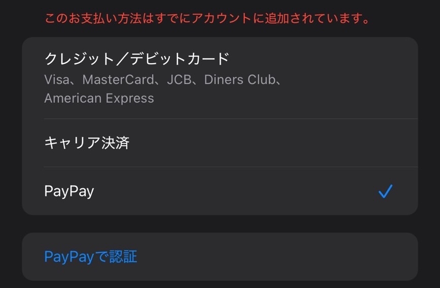 Applepayの支払い方法をPayPayにしているが支払いできない