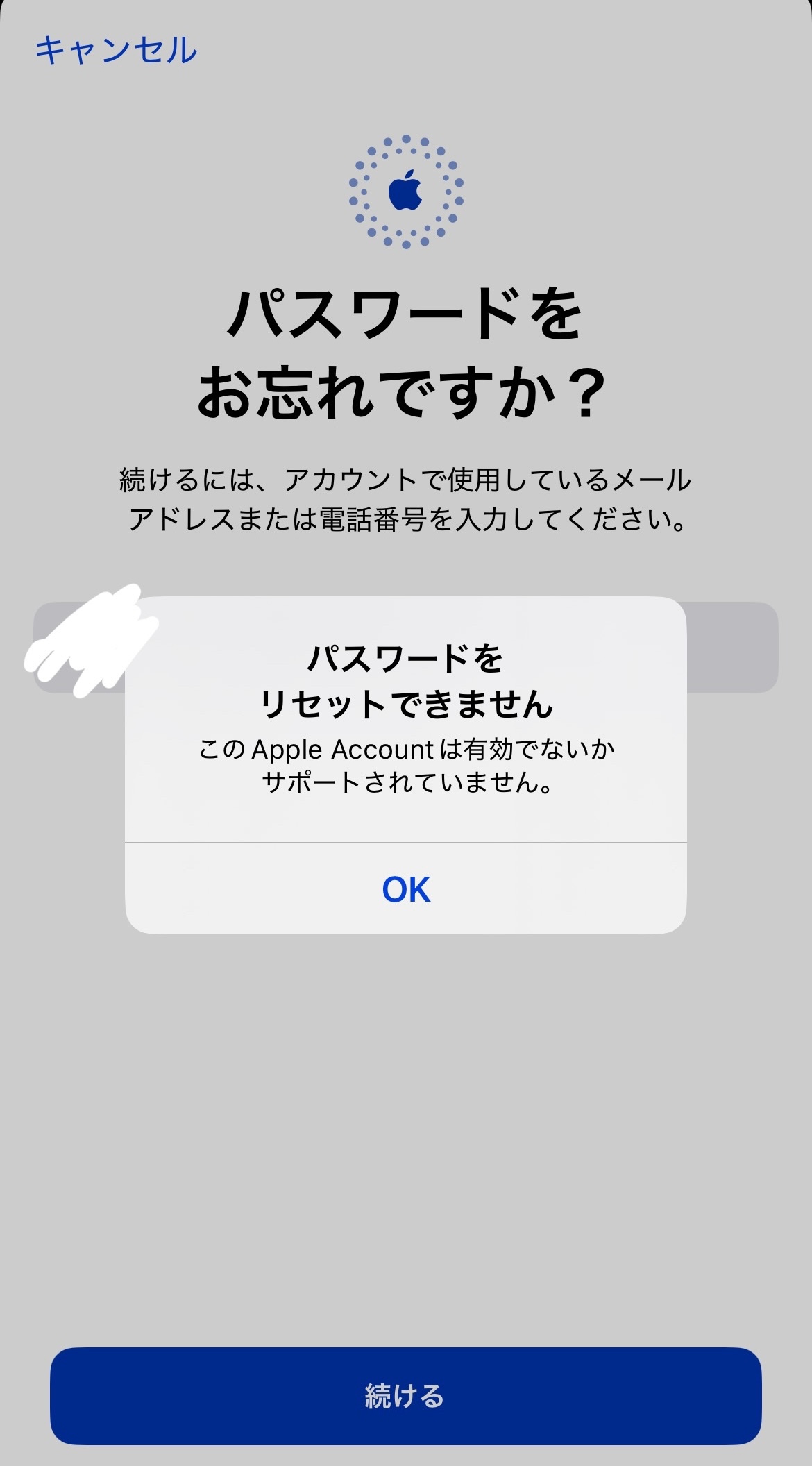 今ひとりで初期設定をしていたのですが、iMessageのパスワード入力をするところから先に進めません。