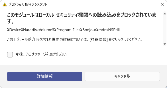 Windows11 で警告。mdnsnsp.dll
