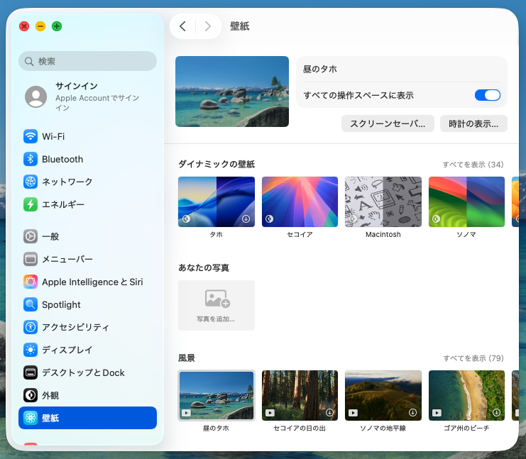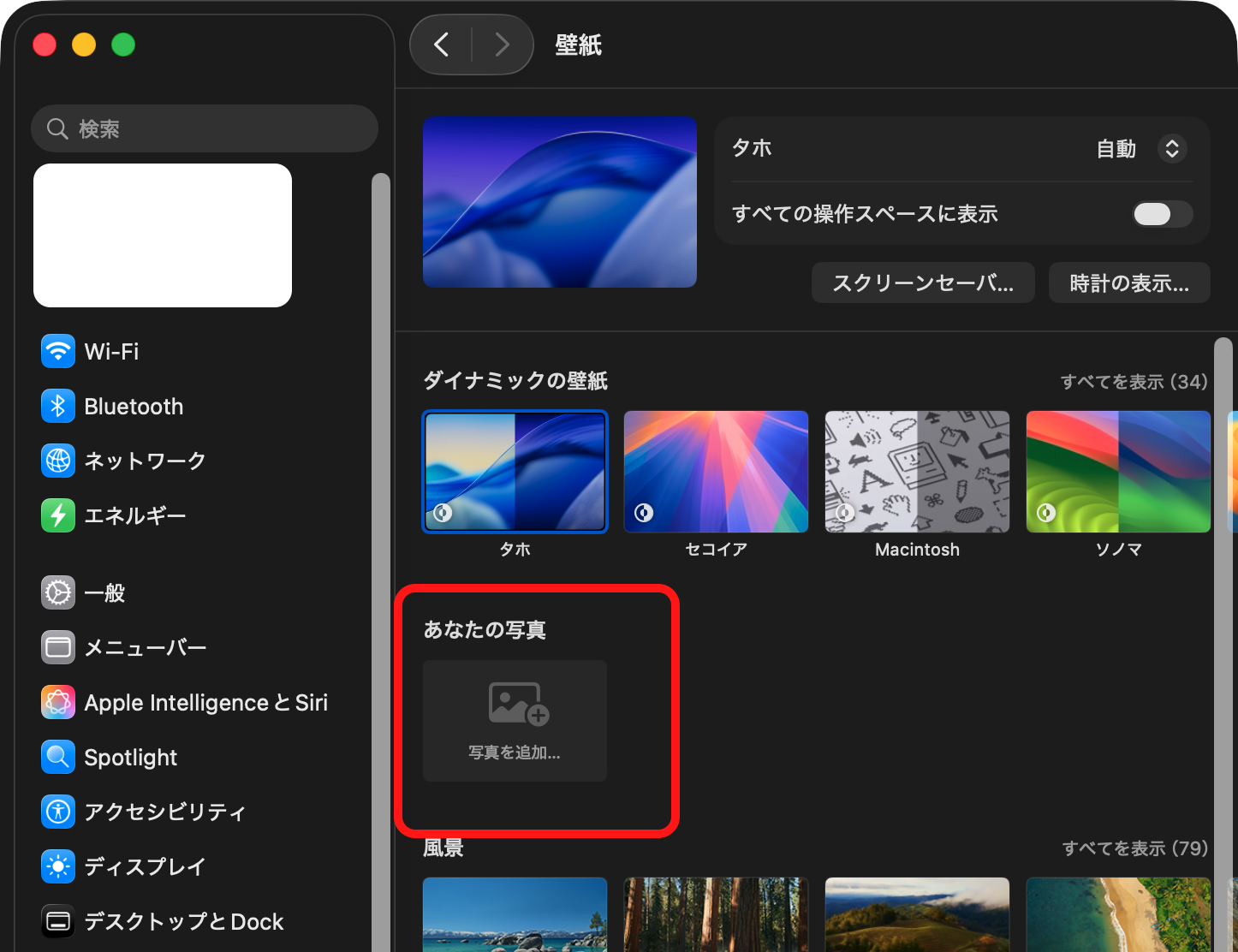 Tahoe 26.0の壁紙設定で「あなたの写真」を設定できない