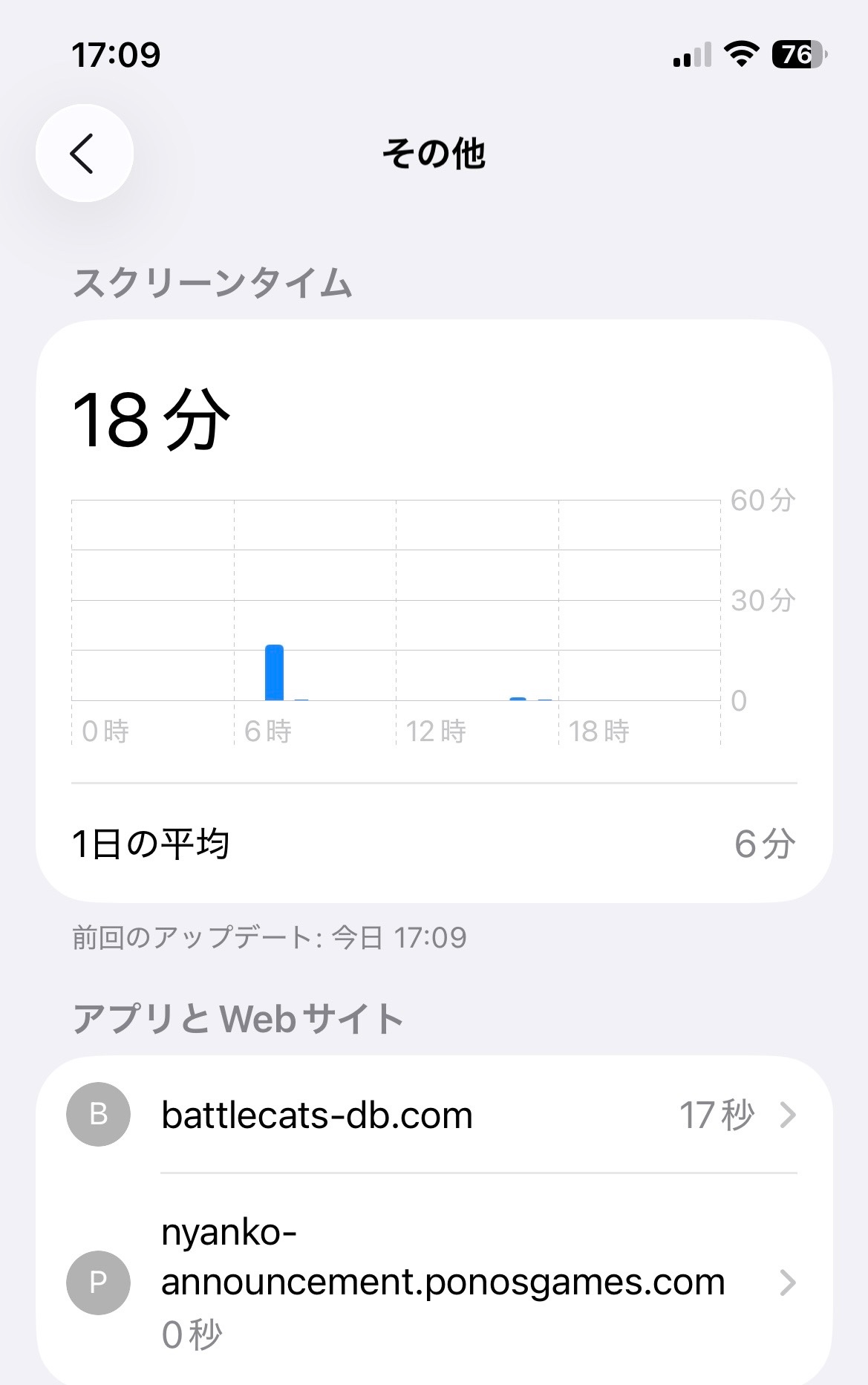 写真のように、その他に分類されているアプリやWebサイトは、今日17秒しか使用していないのですが、18分使用したことになっており、これは別のアプリケーションを使用している時にも増えます。時間制限を設けられているので、この増えたその他の影響で3時間使えるところを実際は2時間しか使えません。どうすれば良いのでしょうか。スクリーンタイムを一度オフにしてオンにしましたが状況は改善しませんでした。直す方法を知っている方がいらしたら教えていただけると嬉しいです。