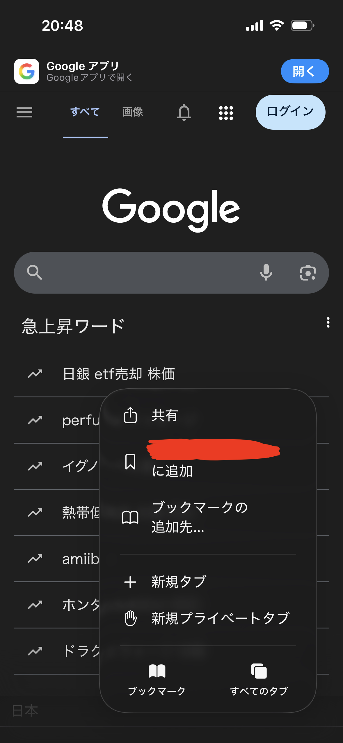 画面右下に三点リーダー…が表示されて、選択するとブックマークへの追加ボタンやタブ一覧を表示するボタンが出るのですが、保存先をいちいち選ばずにブックマークするボタン(赤い部分)の保存先が変えられないです。