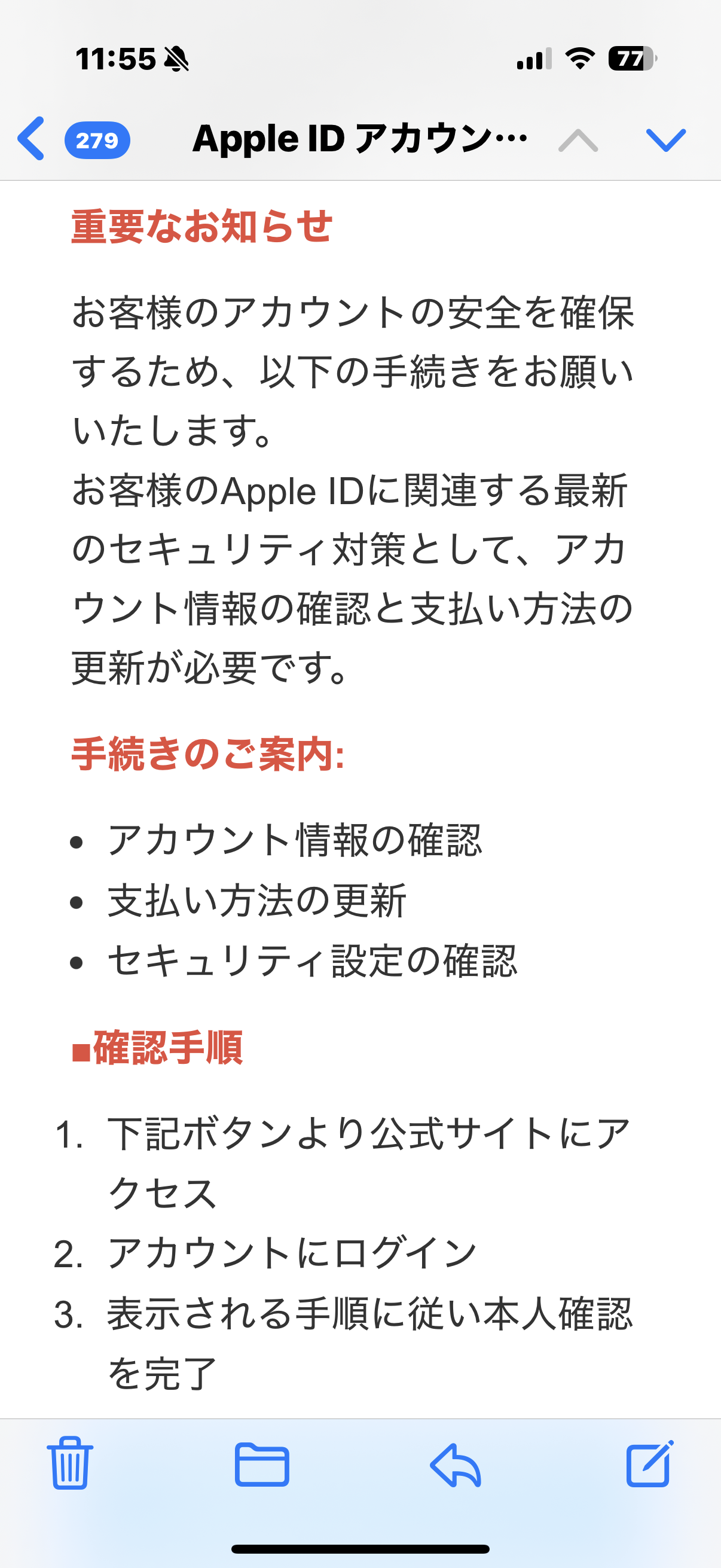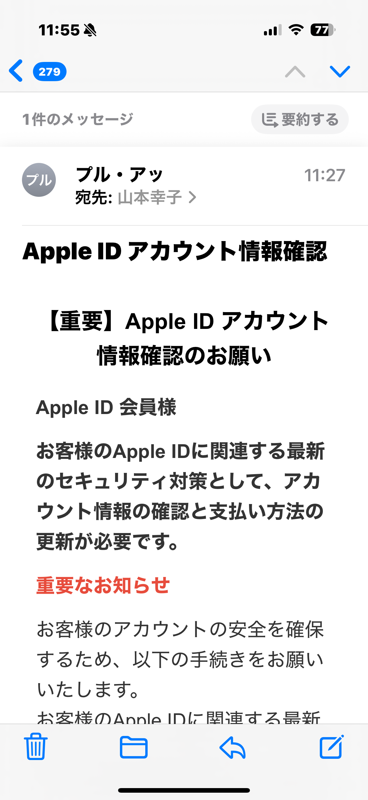 そういう重要なお知らせを「Apple ID 会員様」という不特定多数に送ることはあり得ません。
