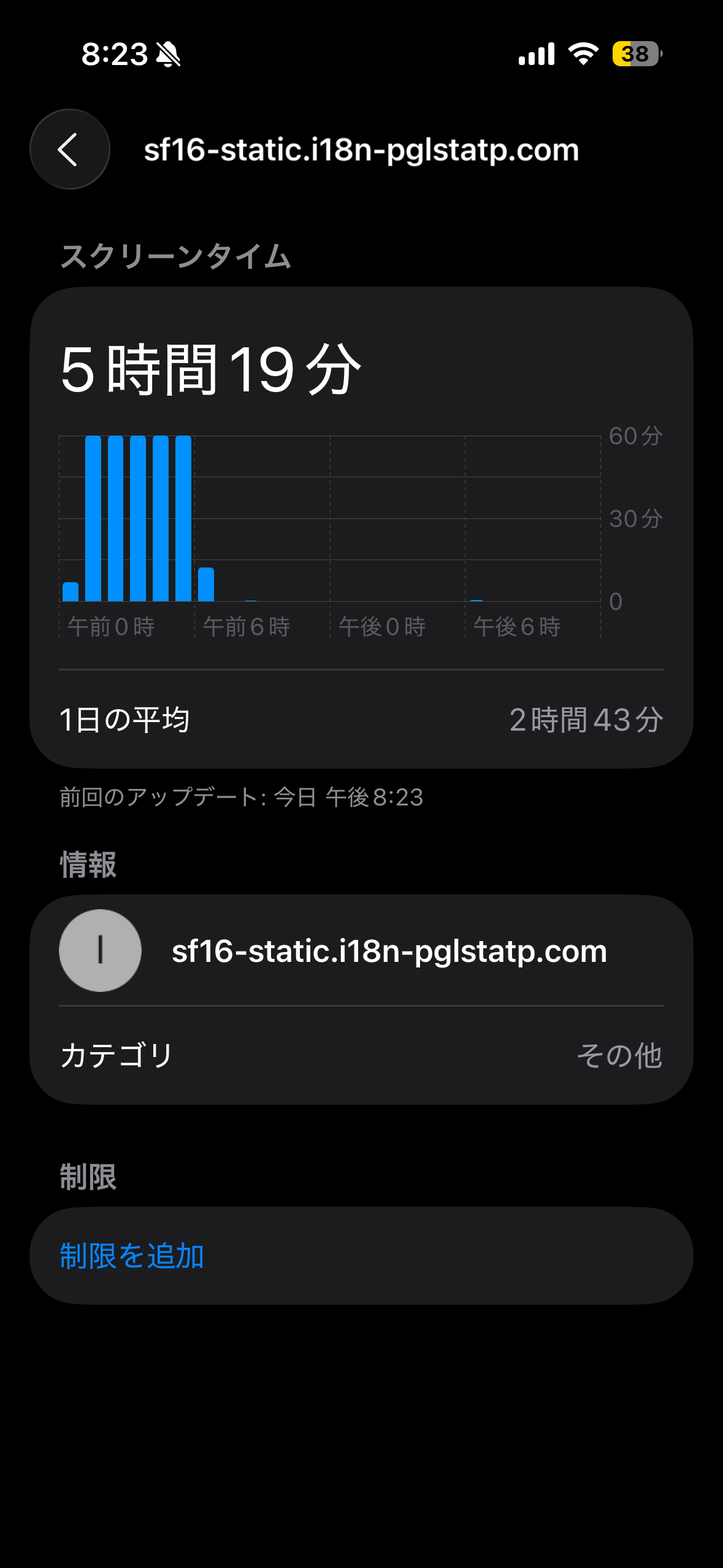 iOS26にアプデ後スクリーンタイムが急激に増加し、履歴を見てみると