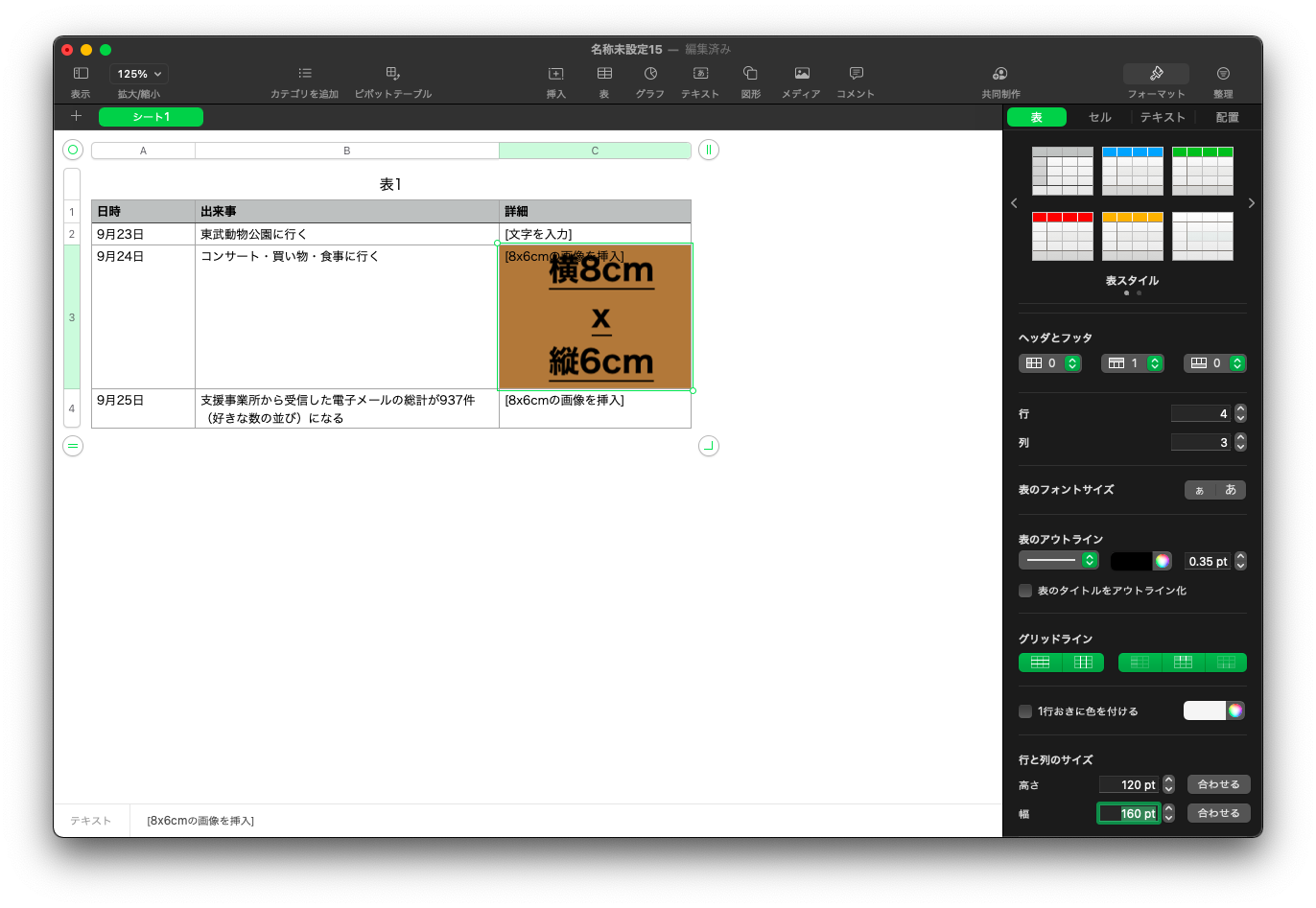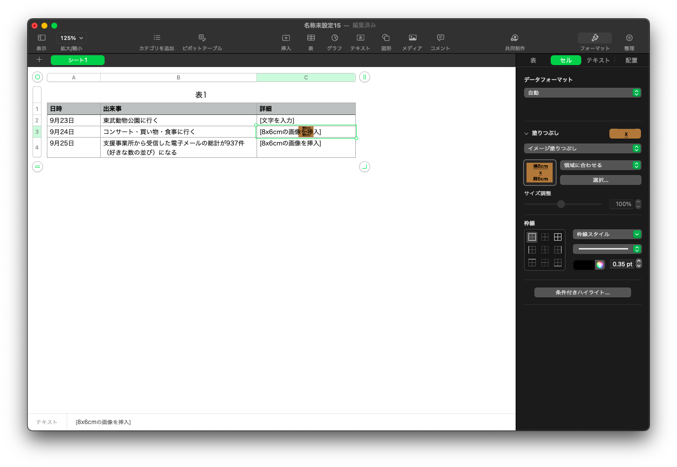Numbers で特定のセルに画像を挿入することはできるのか