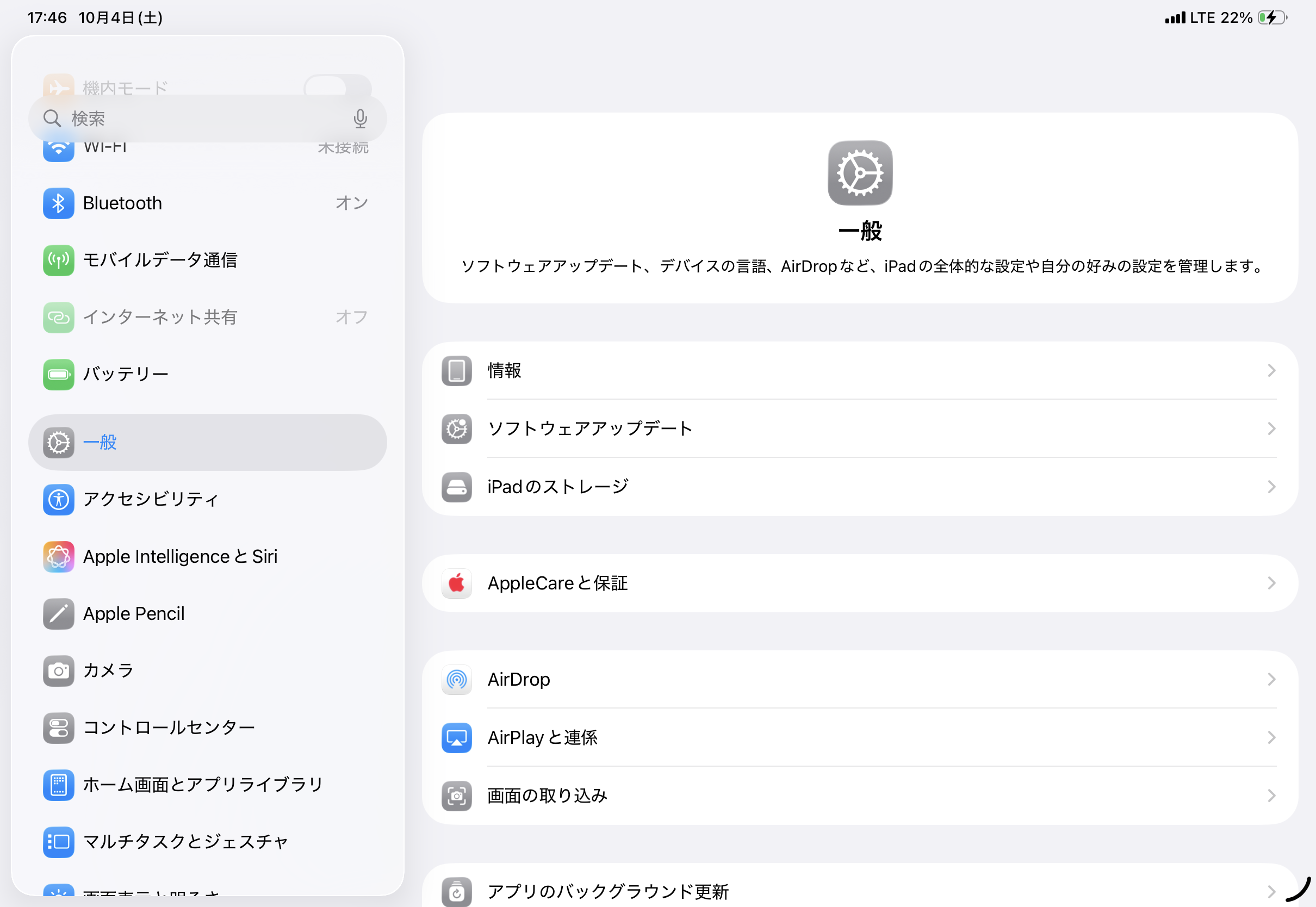 iPadでインターネット共有がグレーアウトして選択できない