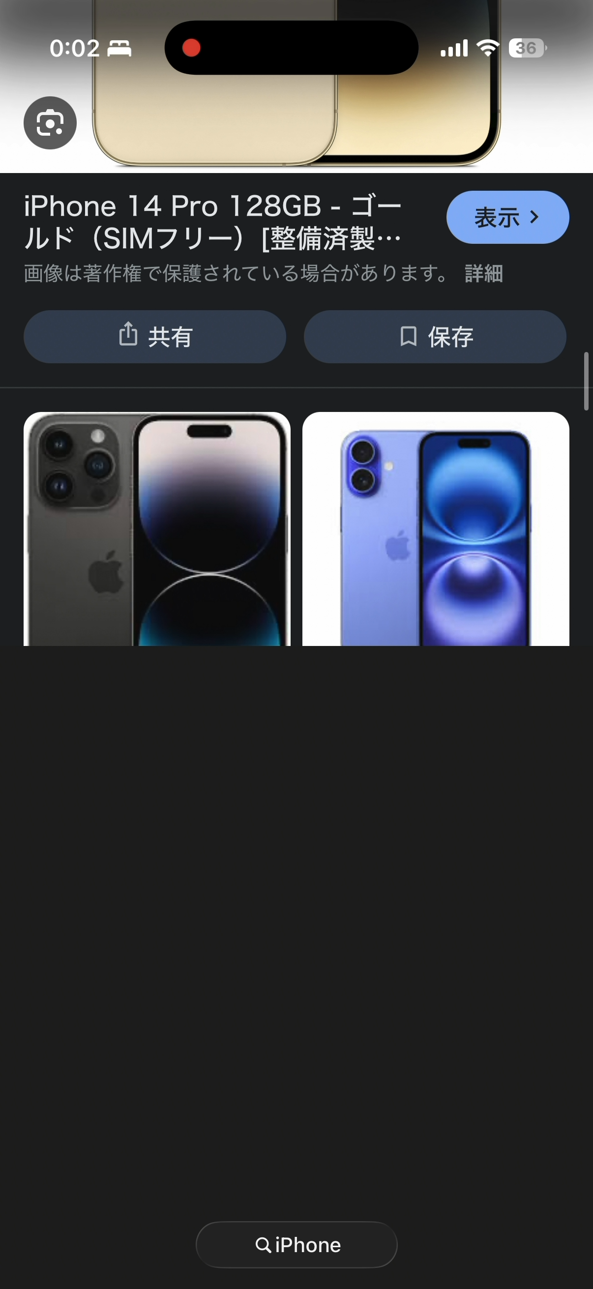 Safariで検索し、画像から詳細を開くと画面が半分消えます。