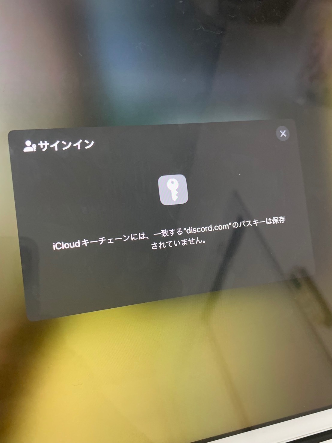 iCloudキーチェーンには、一致する〜のパスキーは保存されていません。
