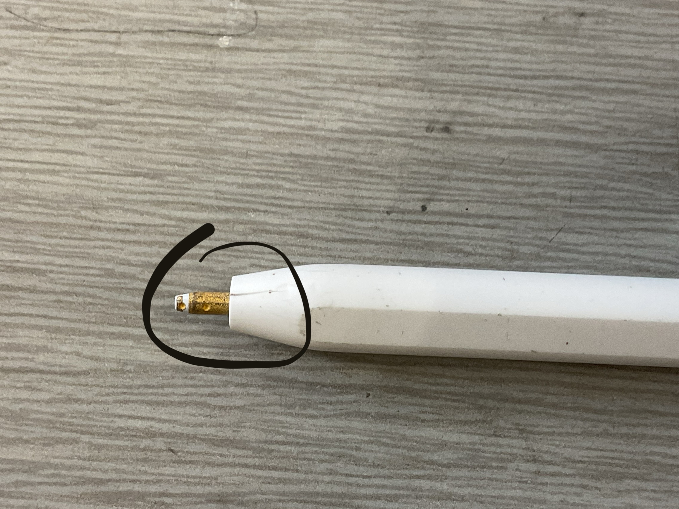 失礼します。Apple Pencil第2世代を筆箱に入れていたところチップが本体に入ったまま折れてしまいチップのつける部分が本体に入ったままになりました。しかし、ネットで調べて見たところ本体に入ってした部分は完全に取れました。しかし後から見てみると本体のペンをつける部分にヒビが入ってしまいました。(写真)おそらくヒビが入っているのでチップが入りません。これは買ってから半年たっています。これは保証が効くのでしょうか。