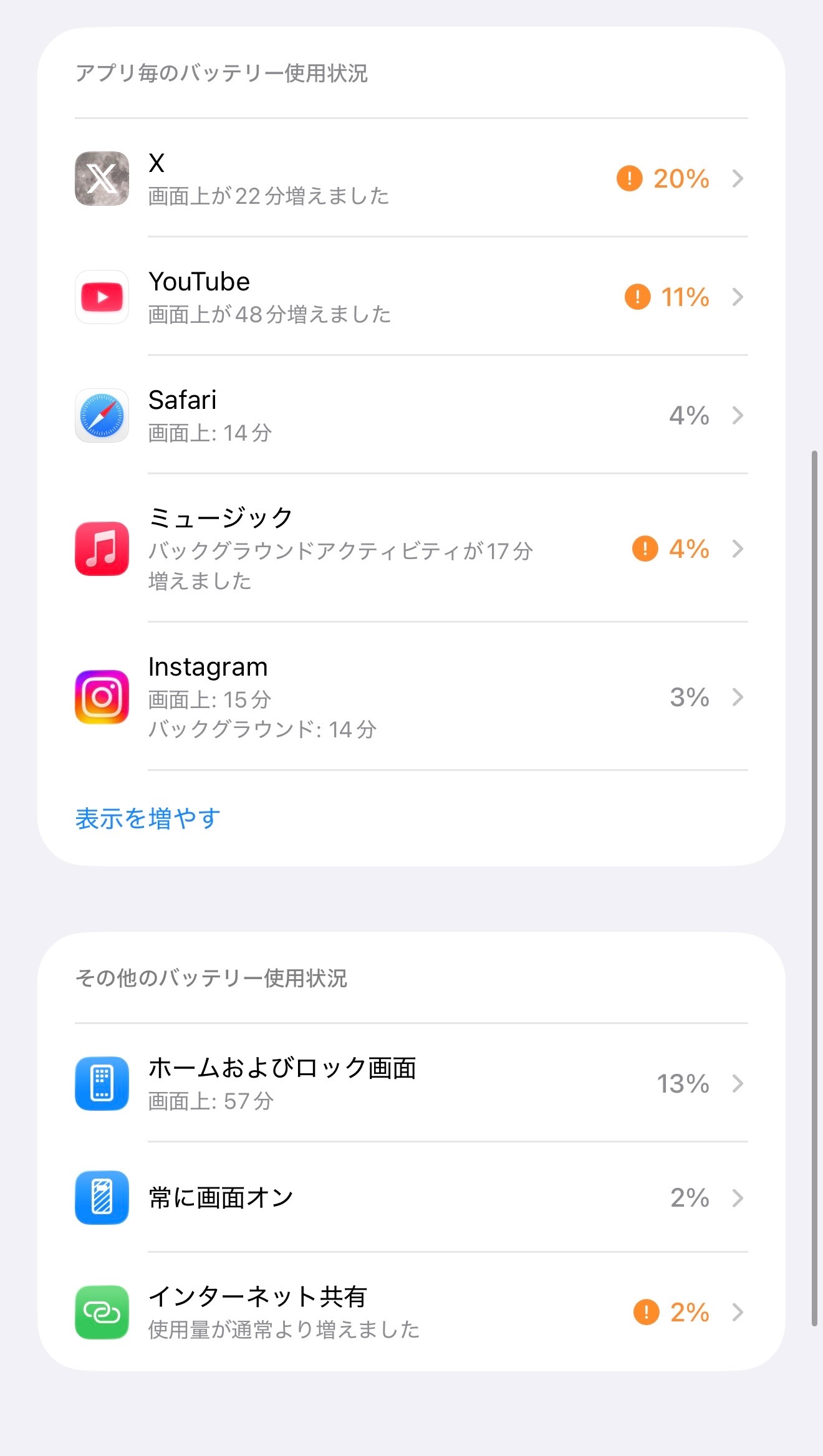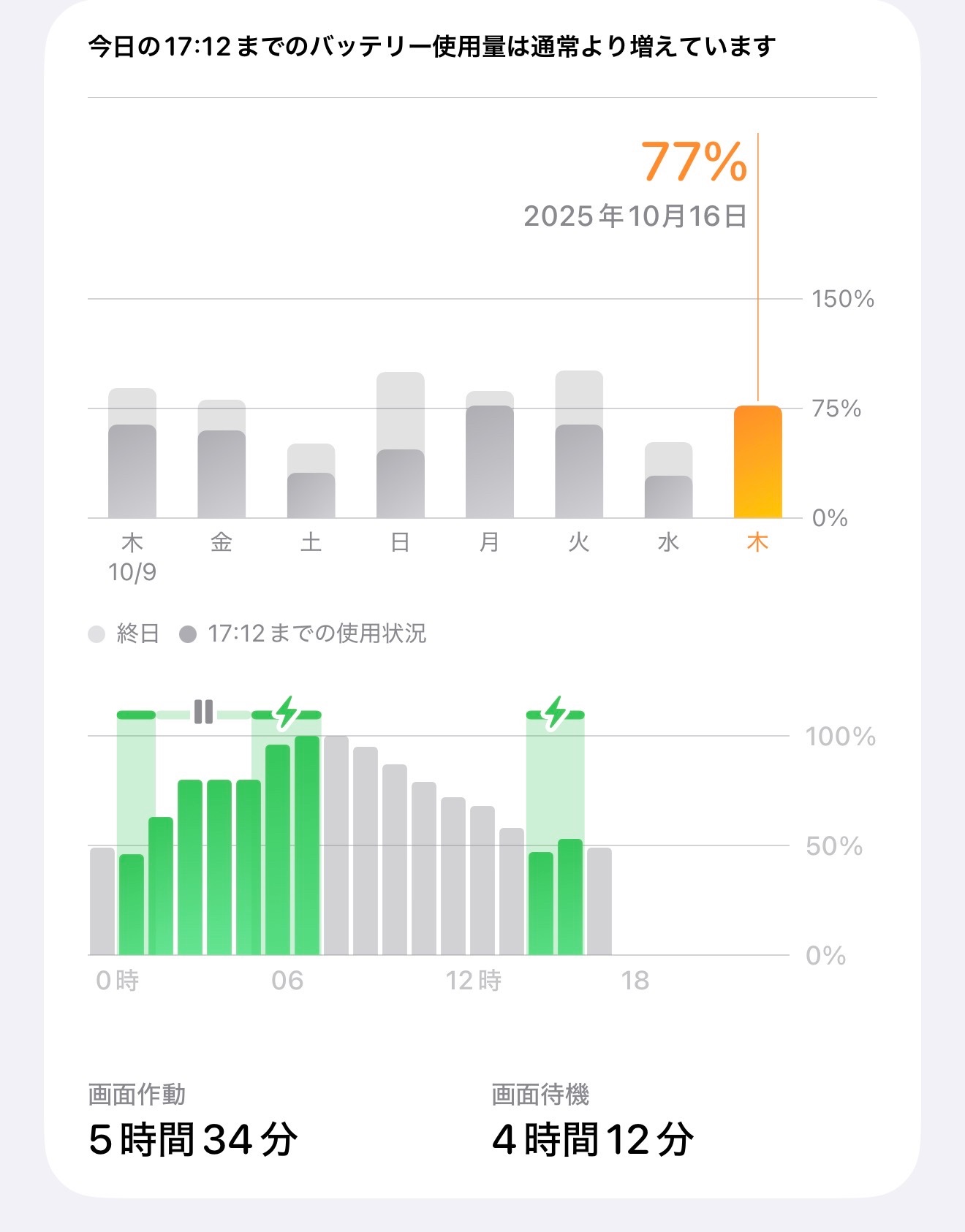 iPhone 17 Pro Maxを使いはじめて三週間ほど経つのですが、バッテリー持ちがイマイチだなと思っています。