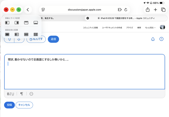 iPadのiOS26で画面分割をする時の3点リーダーについて