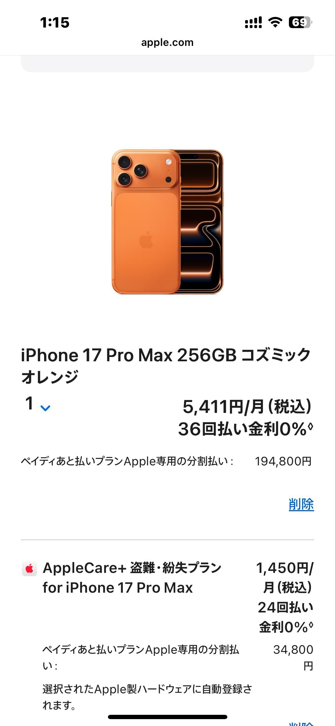 iPhone17promax購入について
