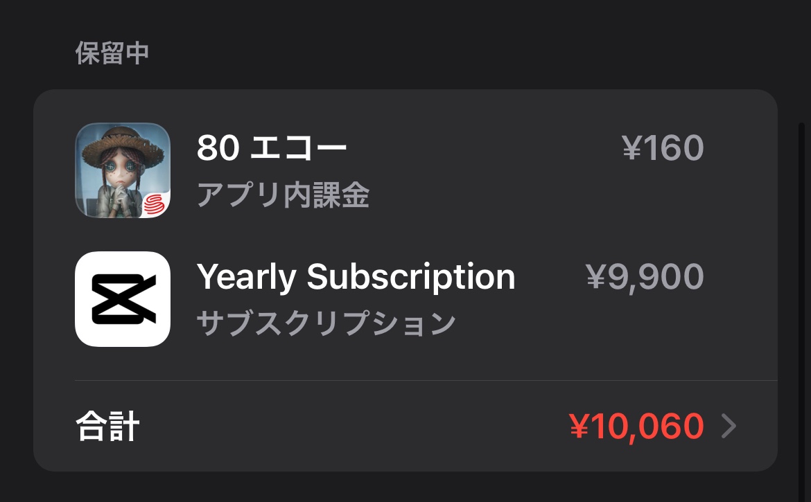 Apple Account に設定されている「お支払い方法」に問題が無い場合は、「保留中」になるのは不具合と言う訳ではなく、購入処理の準備を行なっている状態で、購入処理が完了すれば自動的に解除され、「領収書」メールが発行されます。