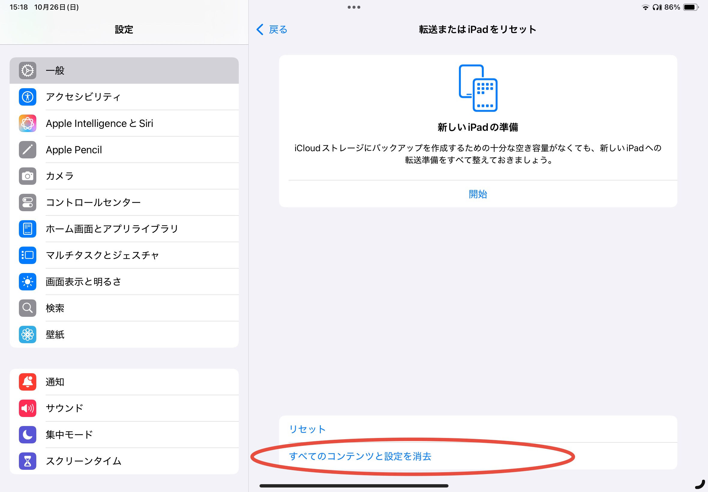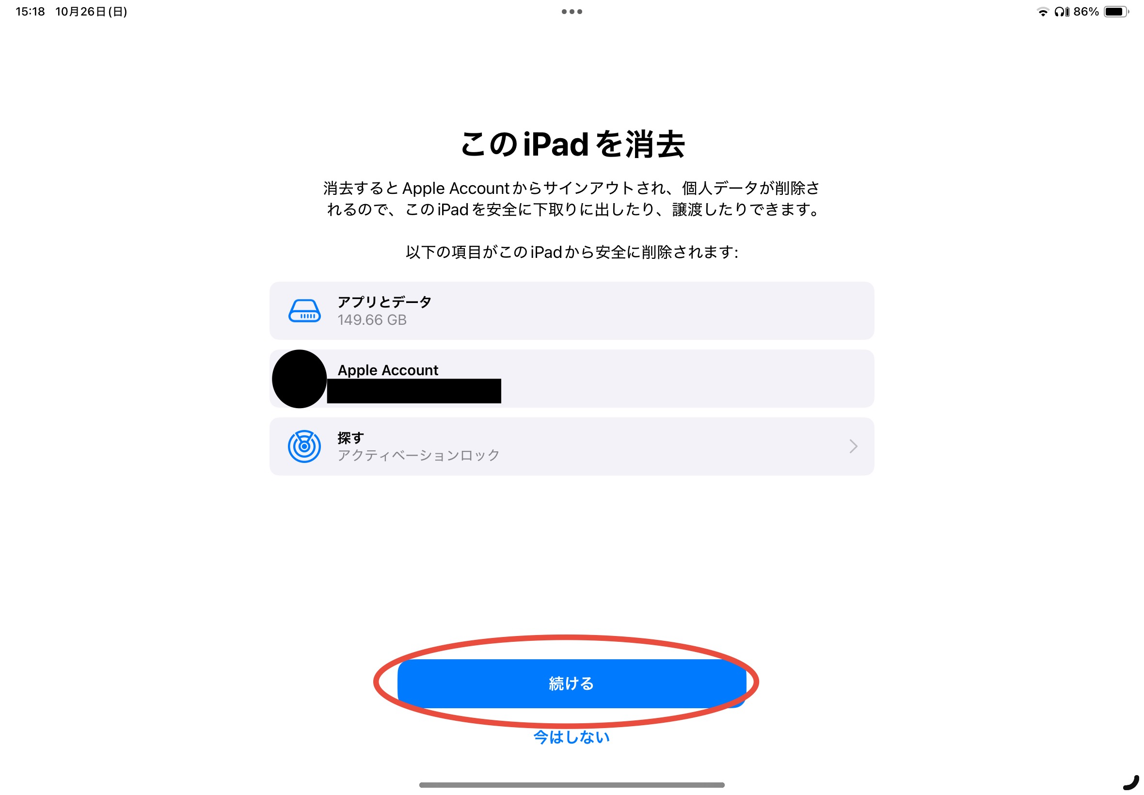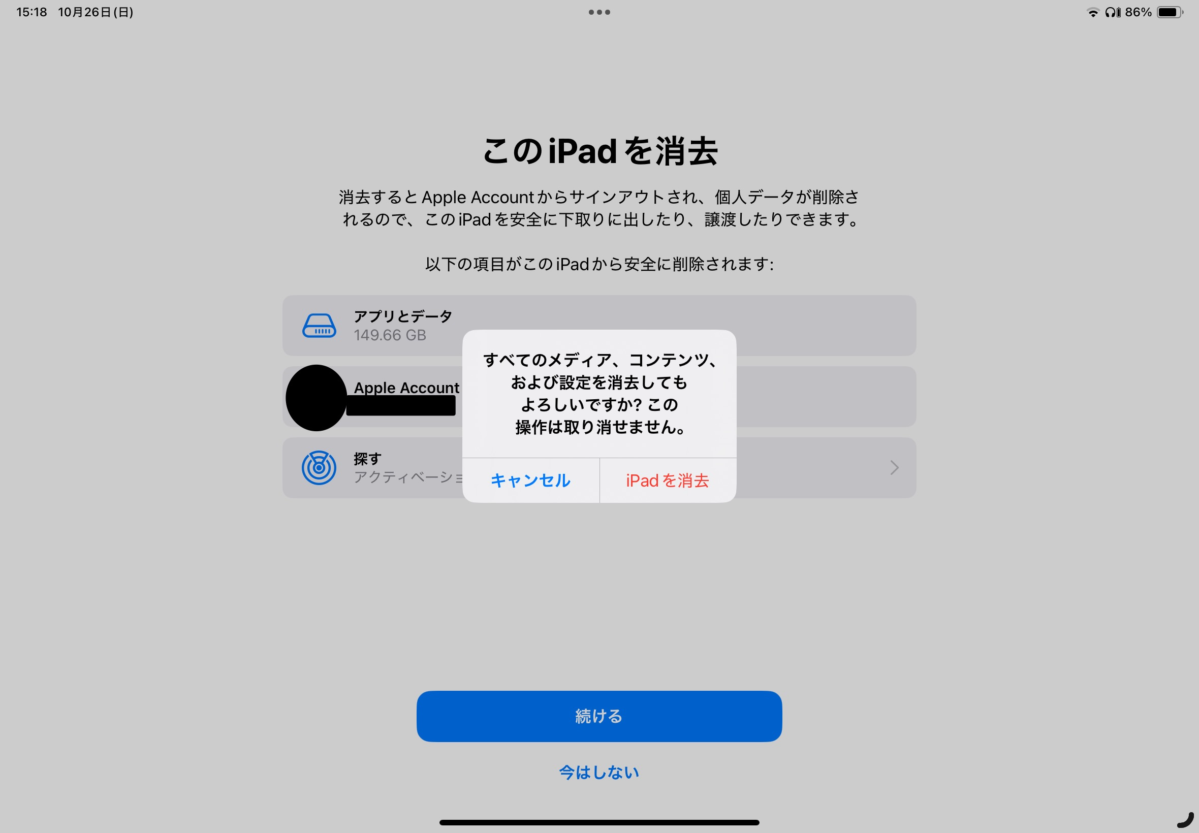 iPad - 全てのコンテンツと設定を消去時にパスワードとスクリーンタイムパスコードが要求されない