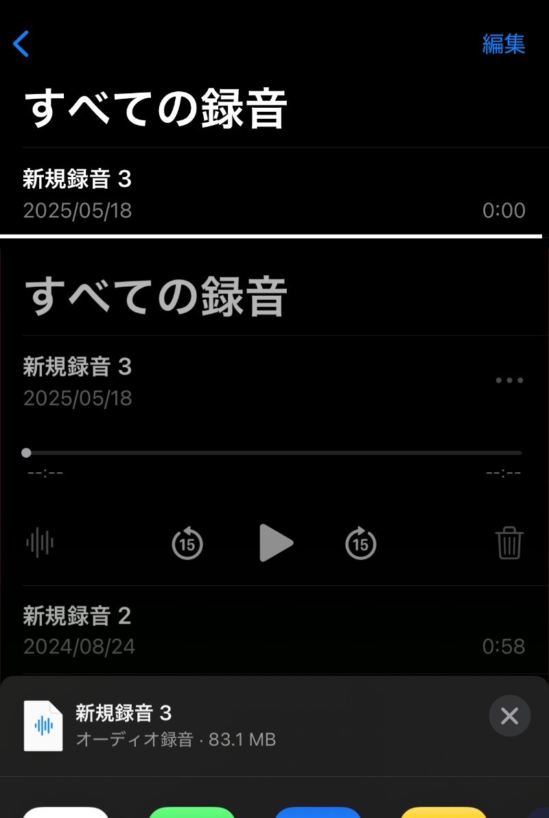 iPhone 15 Pro - 2h38mあったボイスメモが、0:00となっていて再生できない
