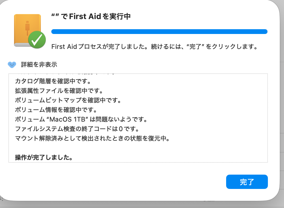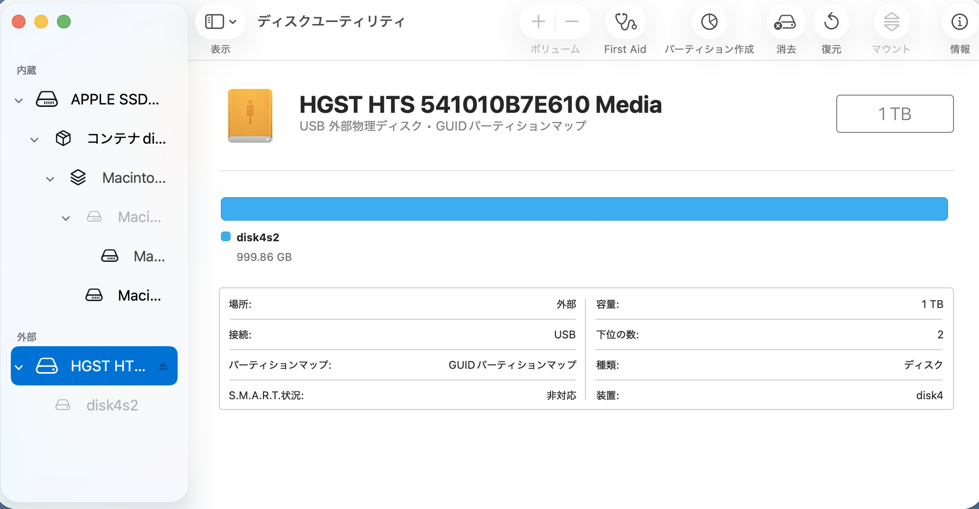 macbook air m2, OS Tahoie26.1 環境で、外付けHD(1TB)がデスクトップにアイコン表示されなくなりました。ディスクユーティリティで確認すると外部としてHDは認識されているようです。いつもはmacbook airのusbにHDを挿入するとディスクがしばらく点滅してアイコンが表示されますが、点滅時間が短くなってすぐに点灯状態になってしますように感じます。