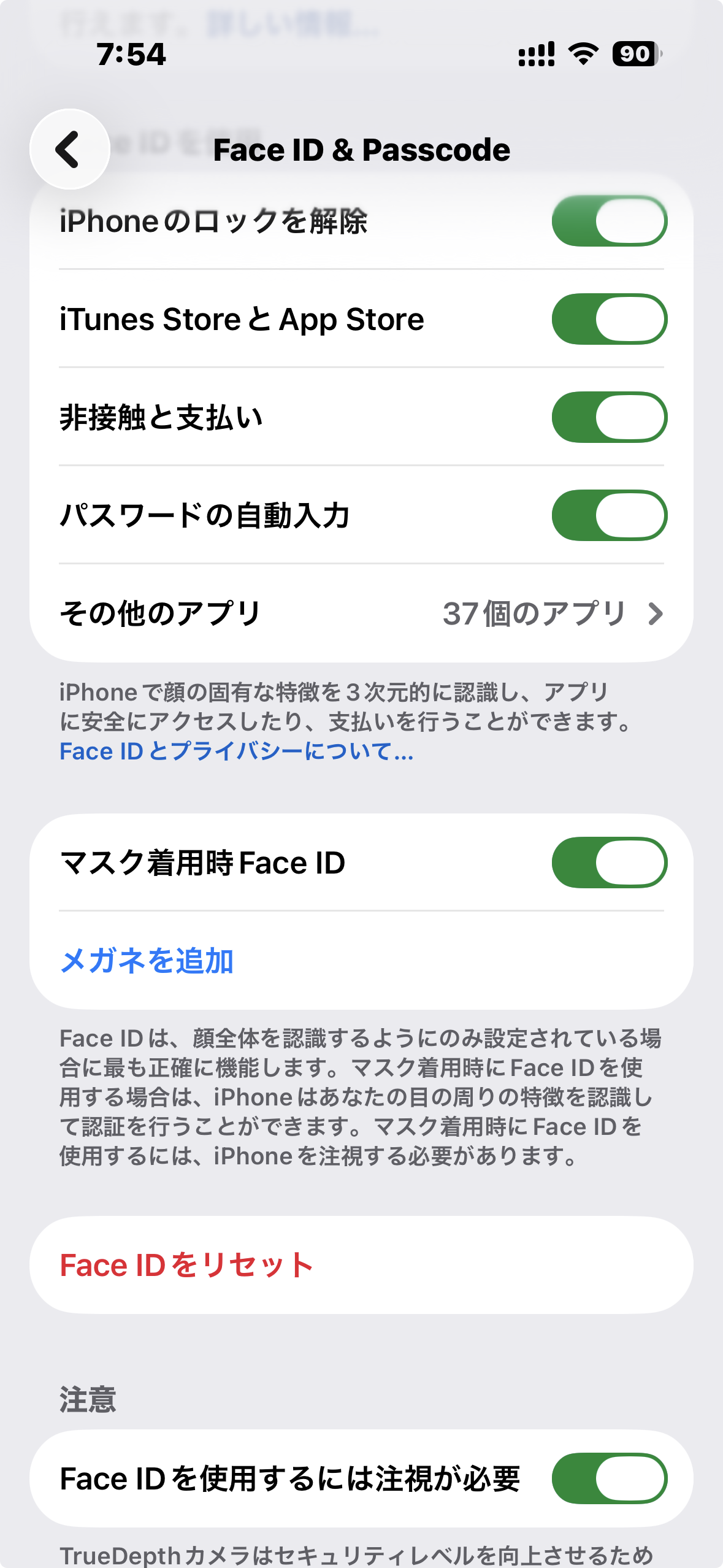 最近老眼が進んで、近視のメガネを外して見る事が増えてきたので、Face IDに素顔も追加したいのですが、、、