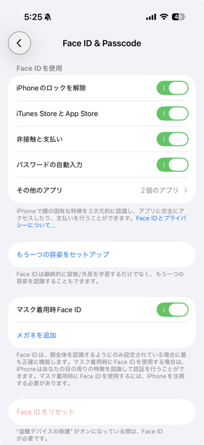 Face IDでマスク着用時でメガネをかけて登録したため、起き抜けなどの時にFACE IDが認識されません。