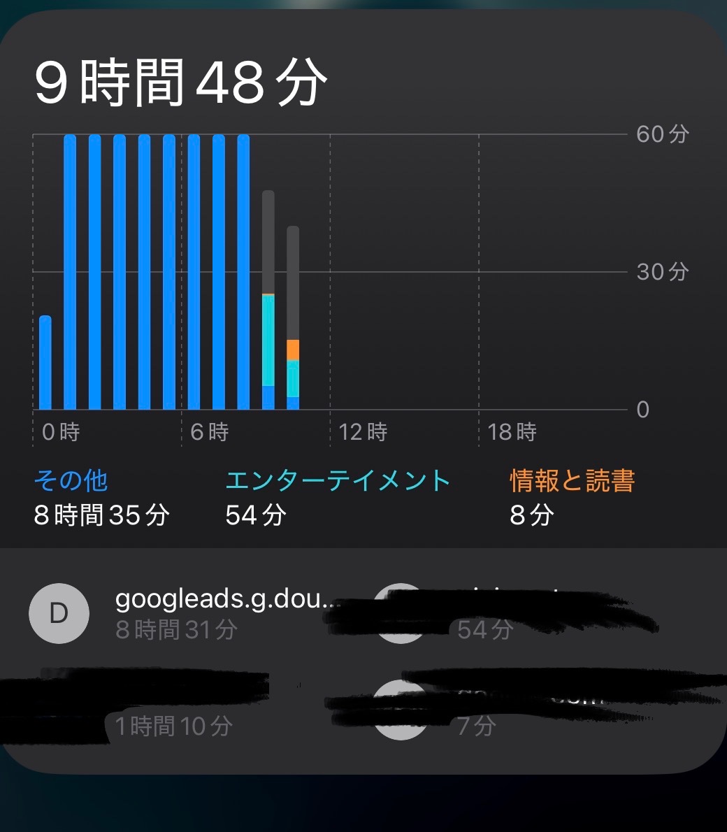 スクリーンタイムでは「googleads.g.doubleclick.net」は見つからないですね。