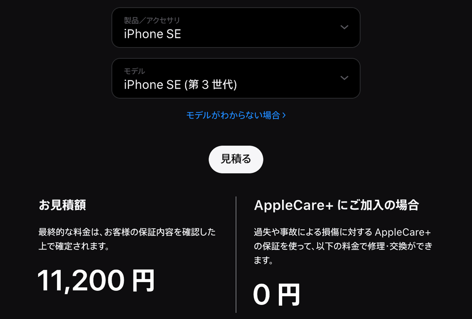 プロパイダ側に問い合わせところ、Apple純正部品を使用しての修理を税込14,080円で承っていること、