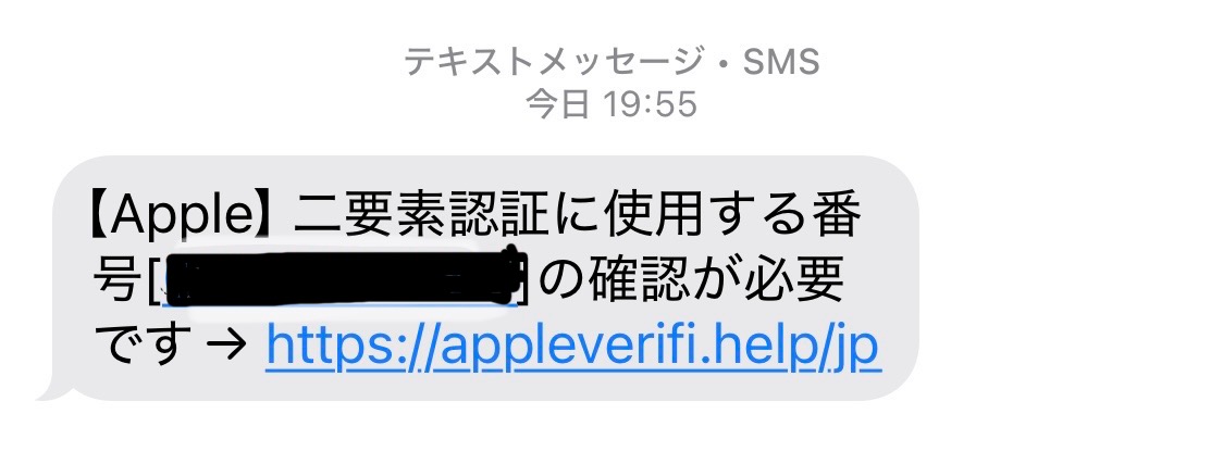 携帯電話番号にSMSで届くのは、アップルアカウントにサインインした場合の、2ファクタ認証の確認コード。