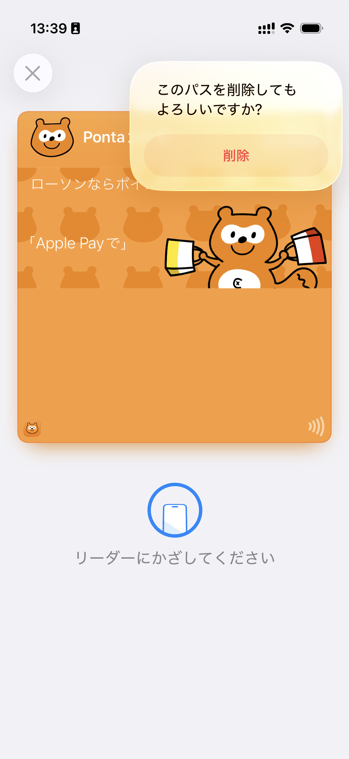 ごめんなさい。ポンタカードをタッチして、このような画面です。