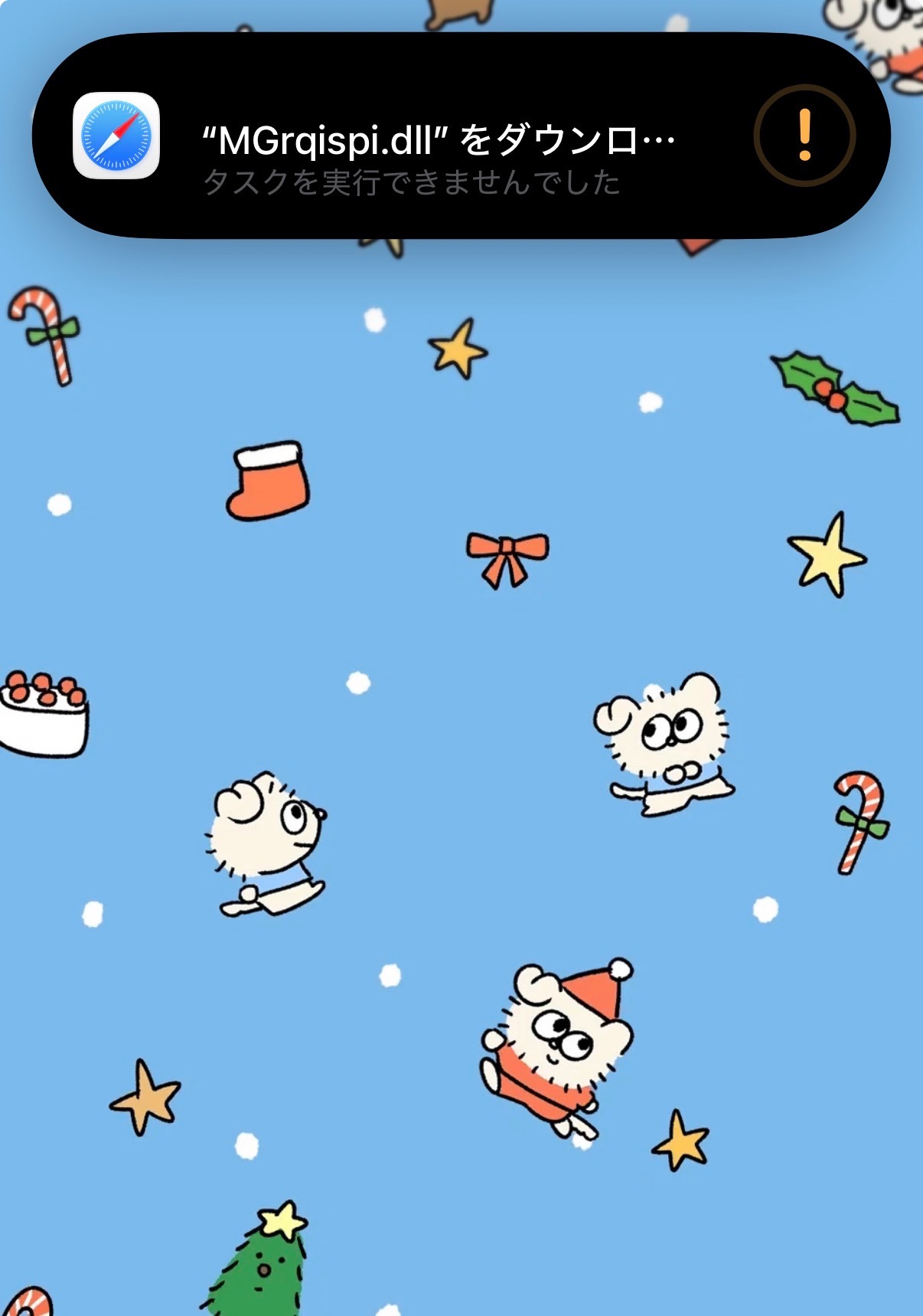 印刷ファイルをダウンロードしようとした所エラーになり、そのページから離れたのですがホーム画面に戻ると以下の画像の様に表示され、アイコンを押してもSafariに移動するだけです。
