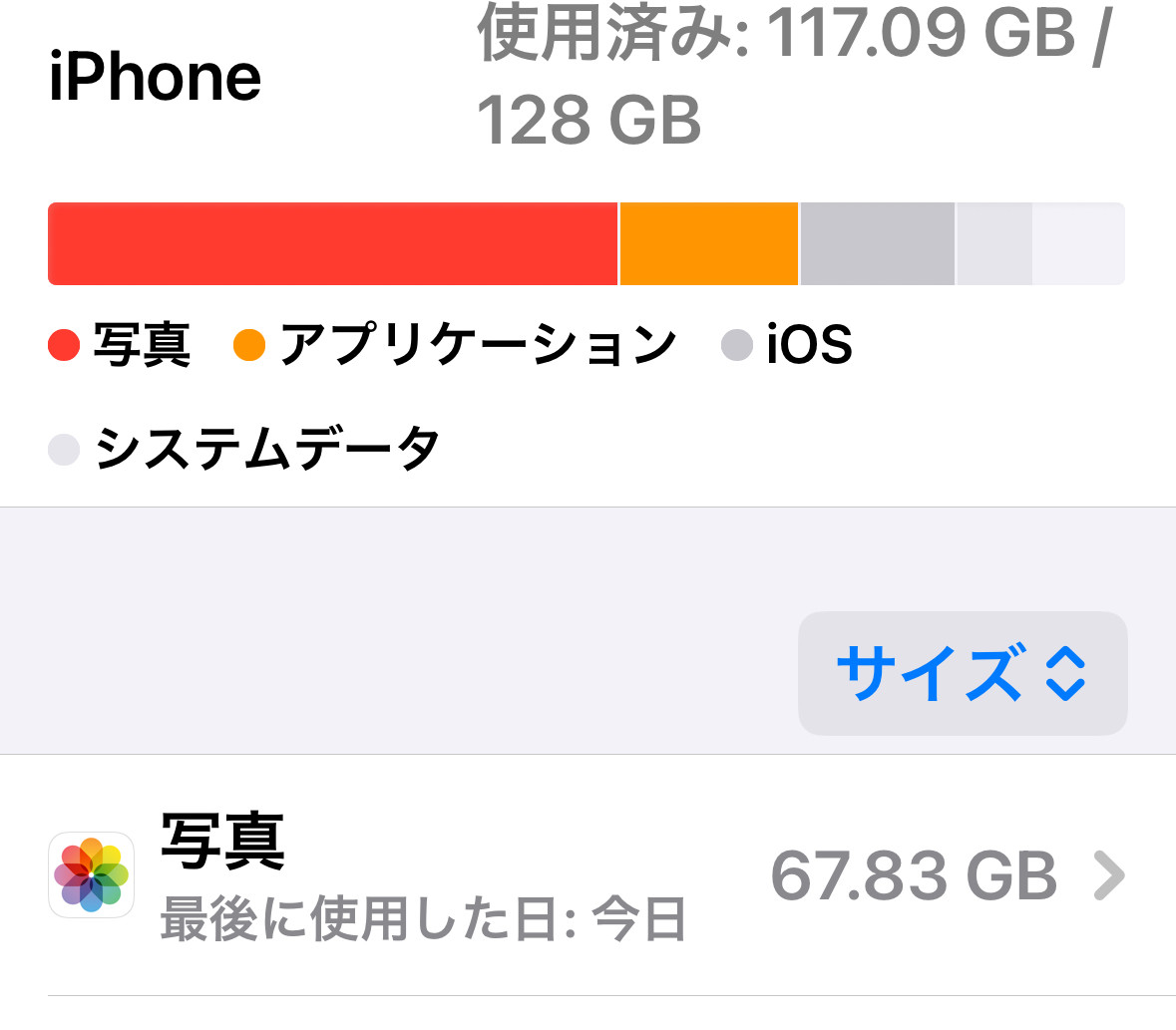 写真が何もないのにストレージが67.83GB仕様されています