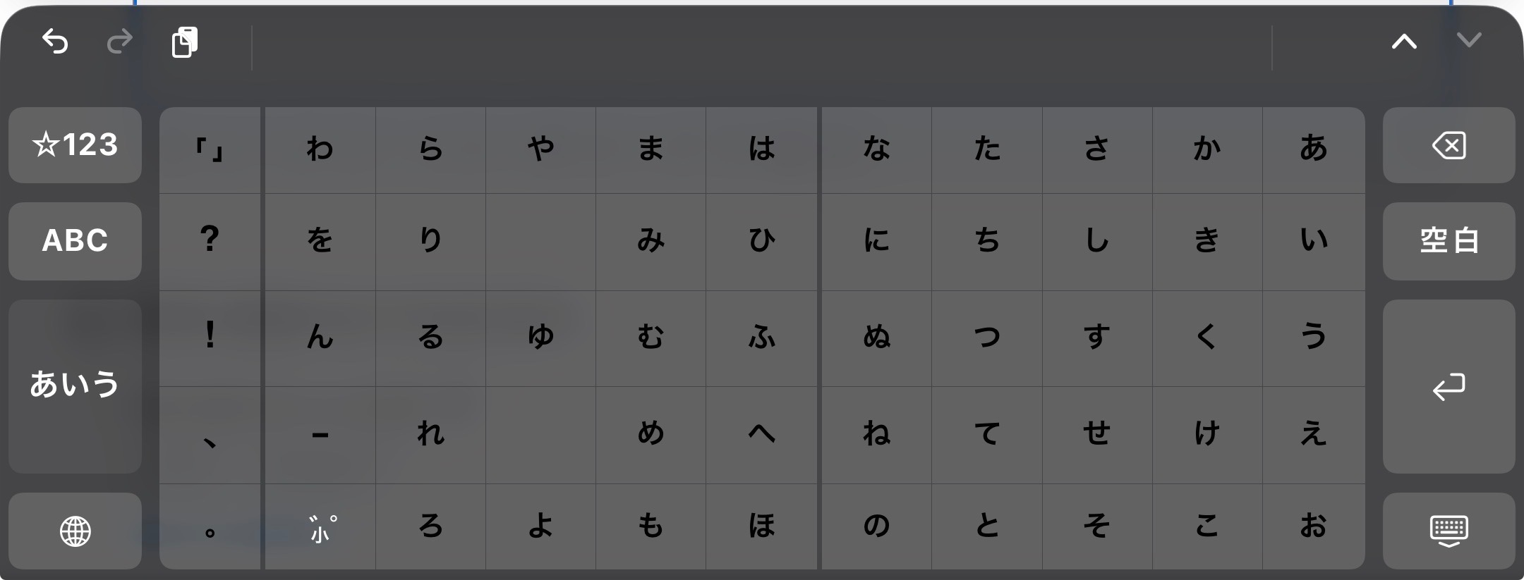日本語フルキーボードをダークモードで使っている時、文字も黒くなる、だけど濁点、半濁点にするボタンだけ白色、全ての文字だけ白色に出来ないですか?