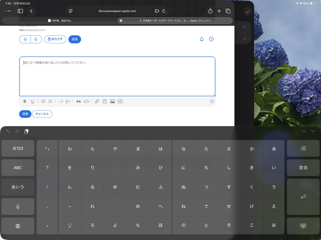 日本語キーボードがダークモードだと、文字も黒くなる