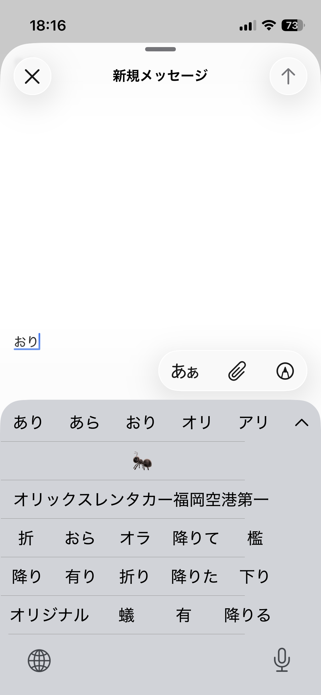 日本語(フリック)入力にて、「おり」と入力すると、何故か「オリックスレンタカー福岡第一」が一番目の候補として表示されてしまうようになったため、予測変換のリセットを行いました。